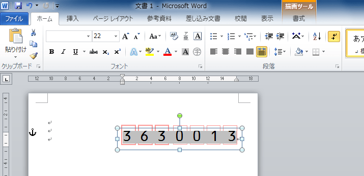 - 横書きテキストボックスを郵便番号枠に配置します。