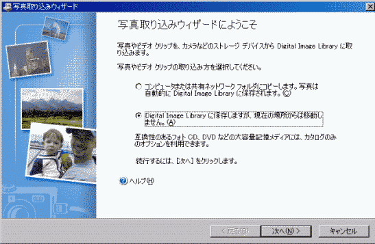 - Digital Image Libraryにだけ登録してハードディスクにはコピーしない場合は