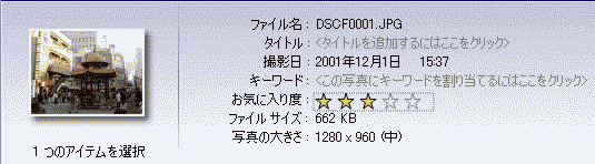 お気に入り度の右側にある☆印をクリックして、5段階でお気に入り度を設定することができます。