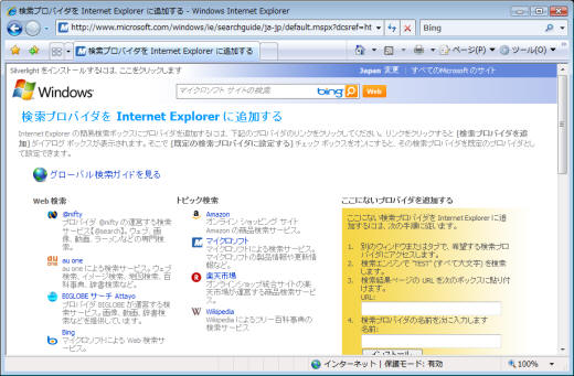 - 「検索プロバイダをInternet Explorerに追加する」のページが表示されます。