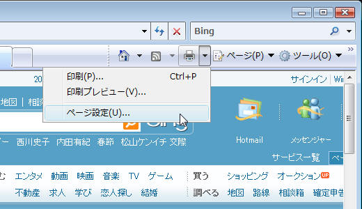 ボタンの▼印をクリックして、一覧から[ページ設定]をクリックします。