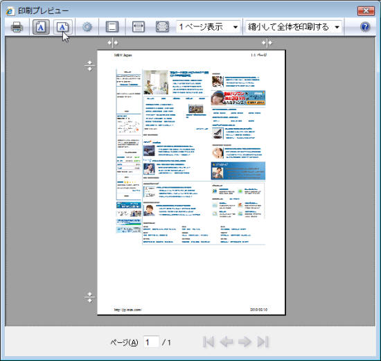 ボタンをクリックすると、ページの向きを横に変えられます。
