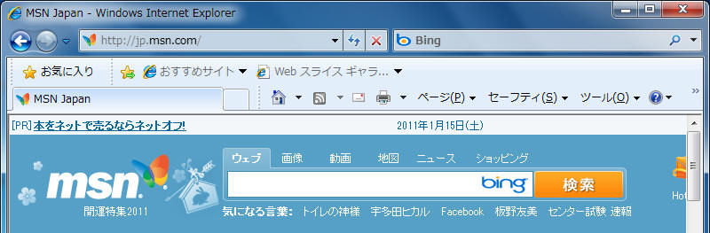 IE6にあったツールバーのそれぞれのボタンの場所を確認してみましょう。