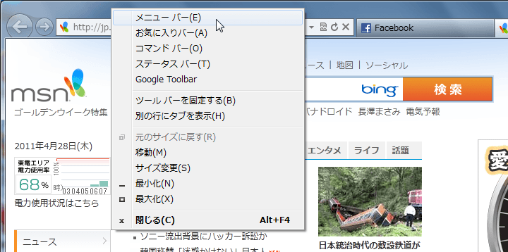 今までIE6を使っていた人のために、メニューバーを表示する方法について説明します。