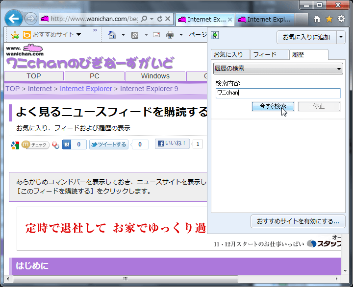 - 検索内容にキーワードを入力して[今すぐ検索]ボタンをクリックします。