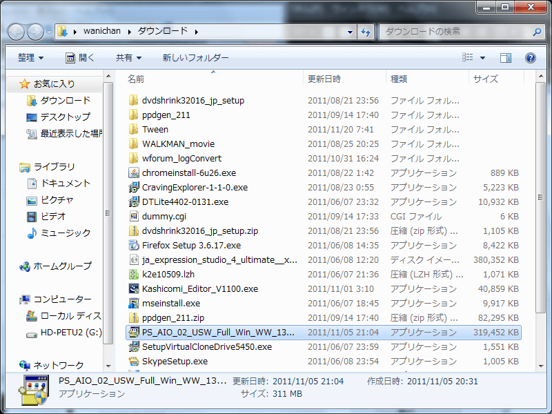 ダウンロードしたファイルを表示するには