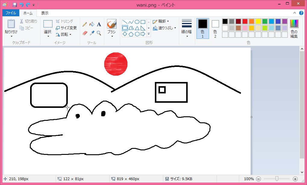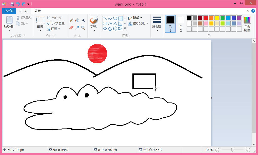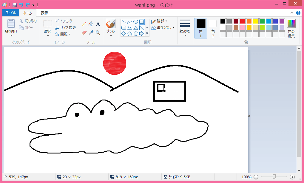 - 対角線上にドラッグすると、四角形を描くことができます。