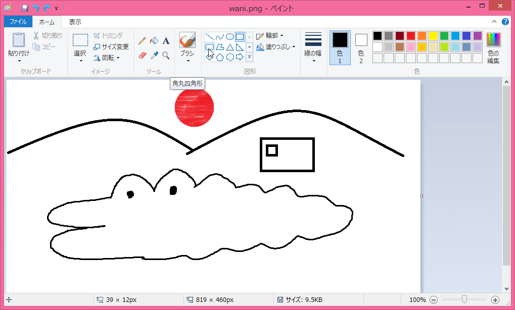 - 対角線上にドラッグすると、角丸四角形を描くことができます。Shiftキーを押しながらドラッグすると、縦横同サイズの角丸正方形を描けます。