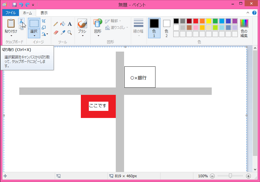 - [切り取り]をクリックするか、Deleteキーを押します。