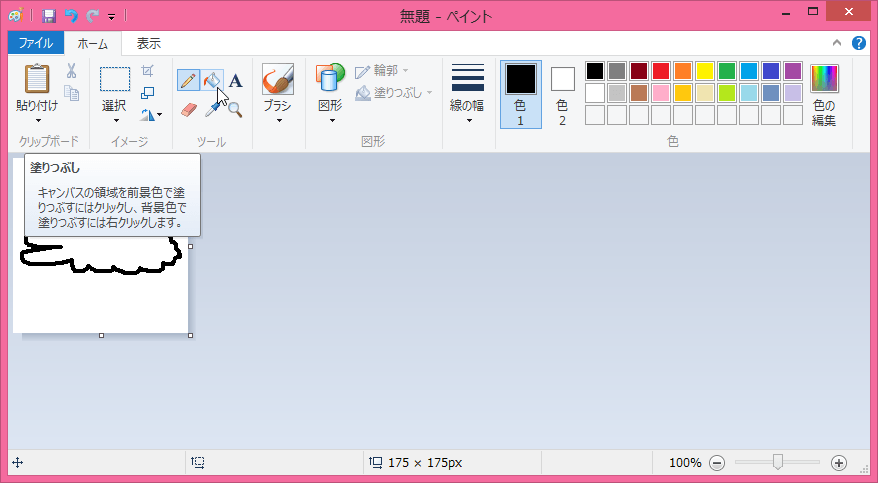塗りつぶしの形状になるので、塗りつぶしたい場所をクリックします。