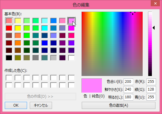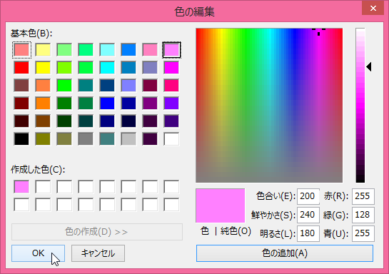 - 追加した色に指定した色が追加されたことを確認して[OK]ボタンをクリックします。