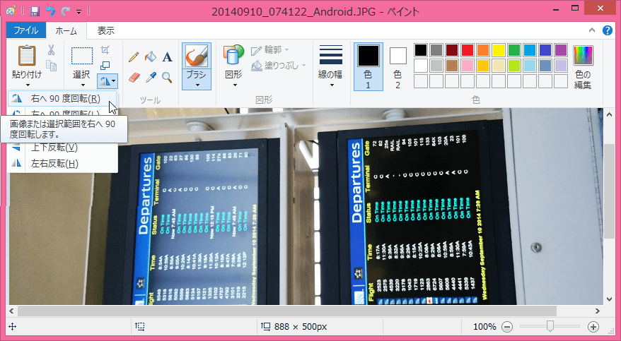 - [右へ90度回転]をクリックします。