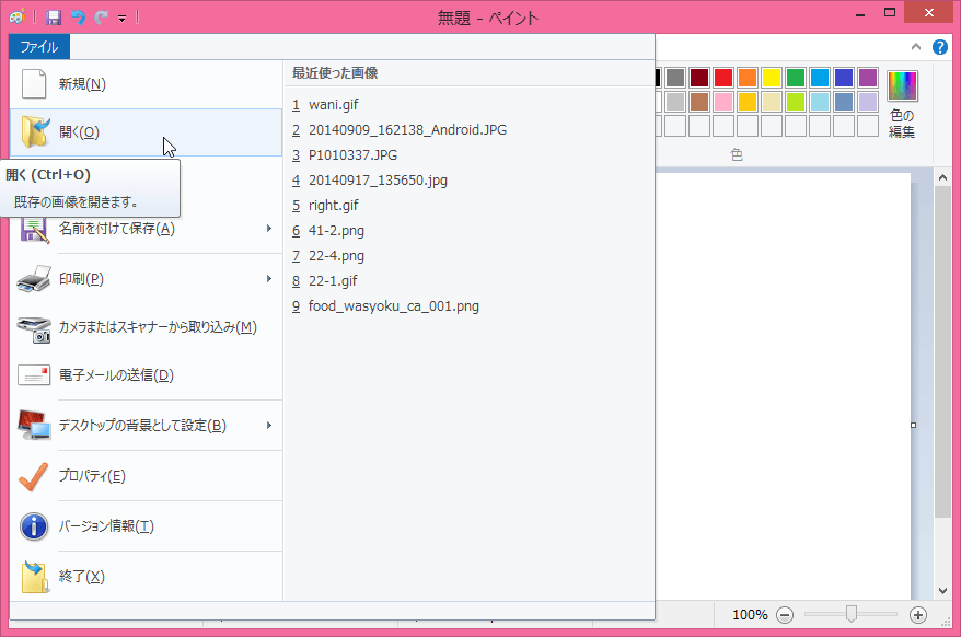 画像ファイルを開くには