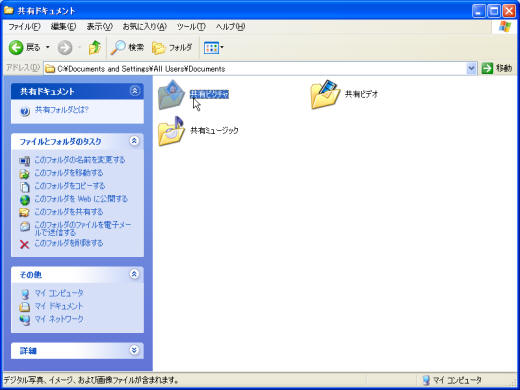 2. [マイコンピュータ]ウィンドウが開きました。[共有ドキュメント]フォルダを開きますので、ダブルクリックします。