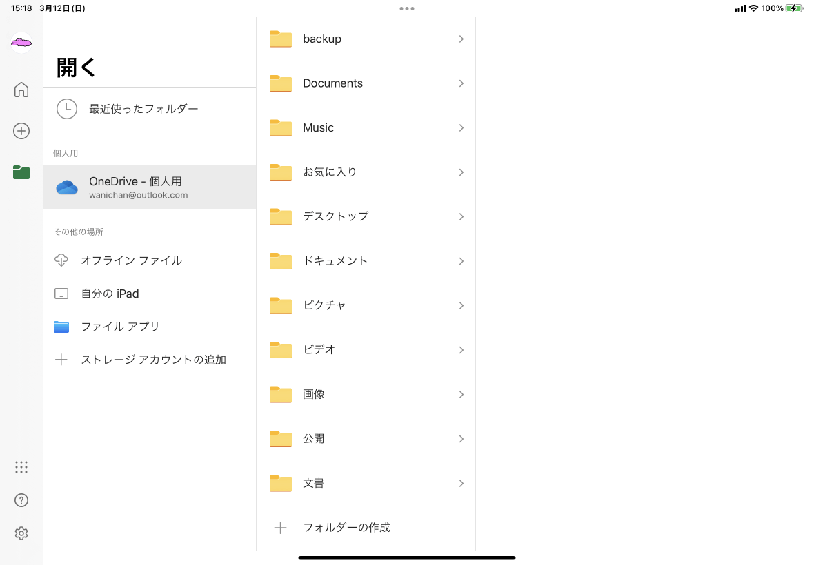 [開く]をタップし、指定のファイルが存在するフォルダーを選択して、ファイルをタップします。ここでは、OneDrive上のファイルを開く方法について説明します。