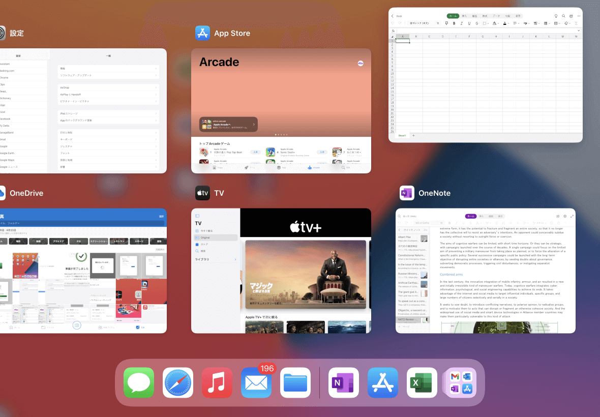 ホームボタンがある iPad でアプリを閉じるには、ホームボタンを2回素早く押して現在開いているすべてのアプリを表示し、一覧からExcelアプリウィンドウを下から上へスワイプします。ホームボタンがない iPad では、画面下からゆっくりと画面中央にかけてスワイプし、一覧からExcelアプリウィンドウを下から上へスワイプします。