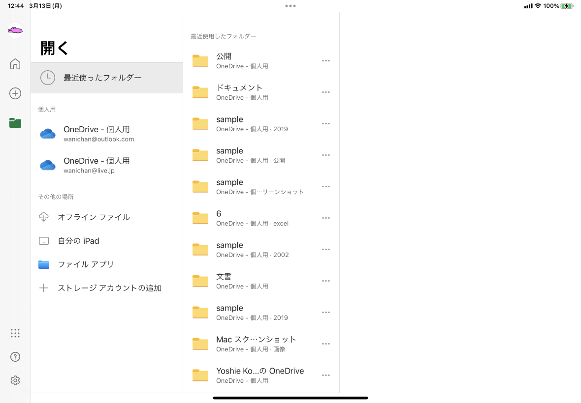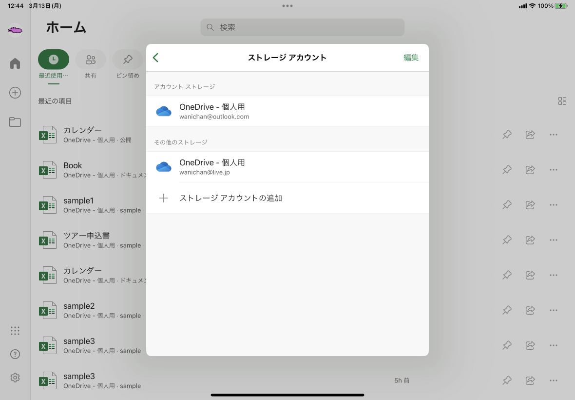 ホーム画面から[開く]画面を開き、[その他のストレージ]の[ストレージアカウントの追加]から操作してもOKです。
