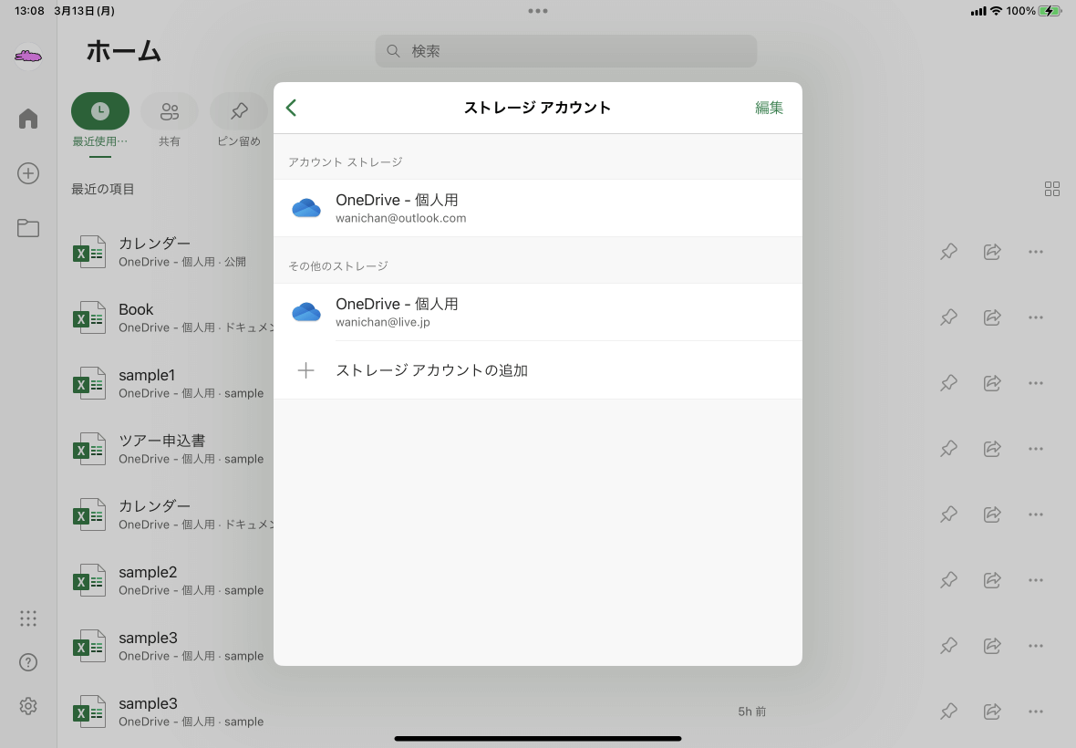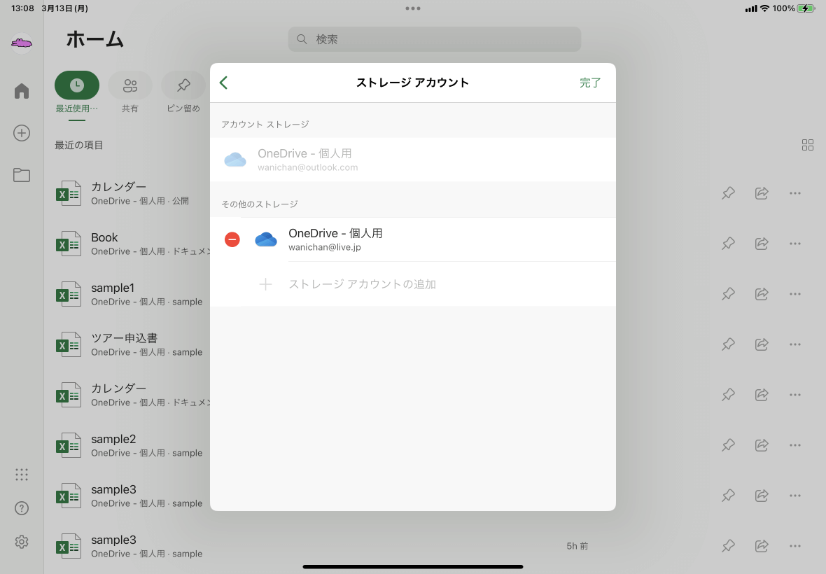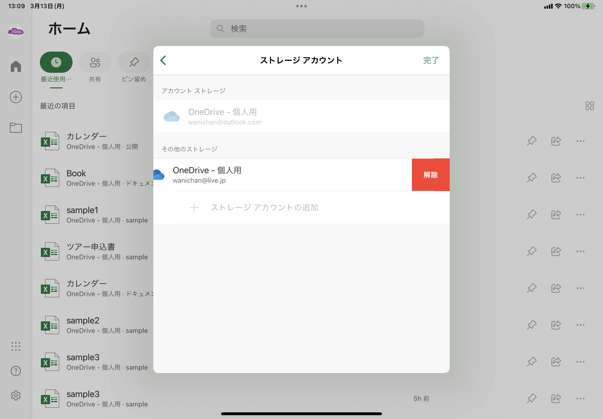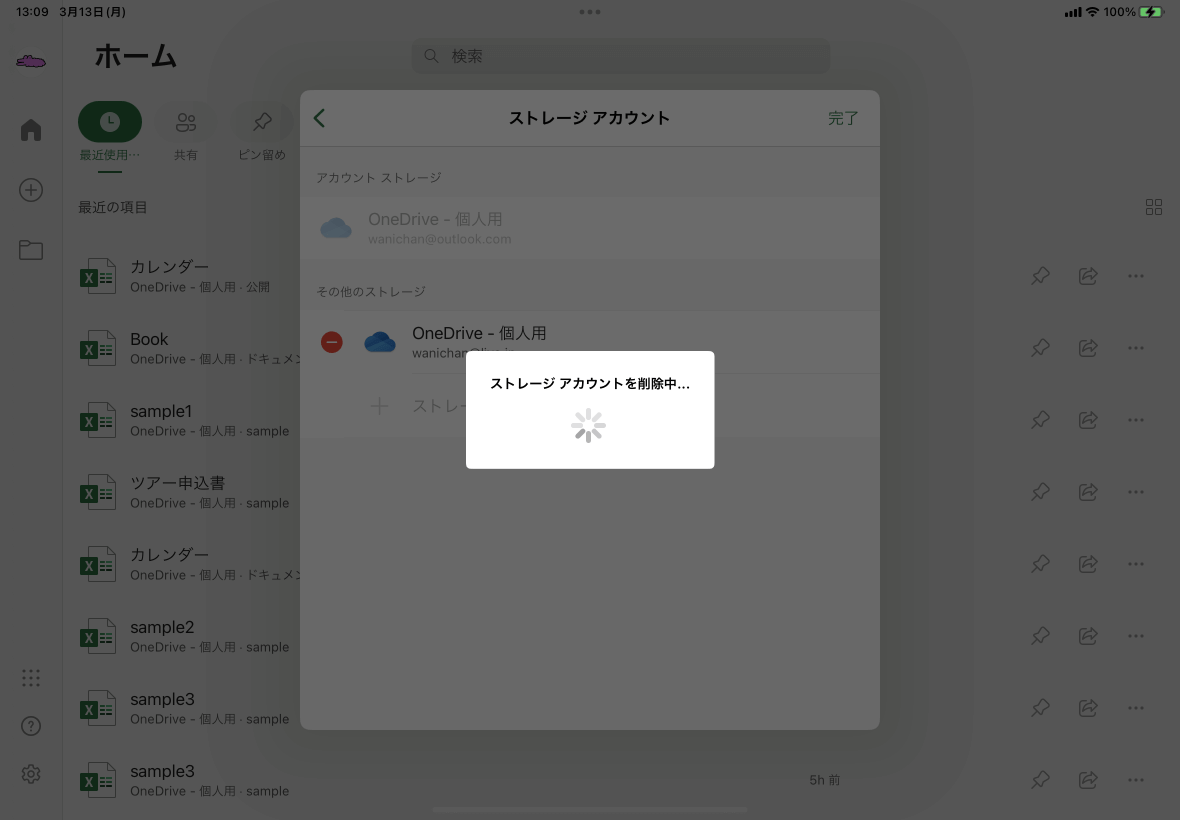 現在サインインしているMicrosoftアカウントとは異なるストレージは、必要に応じて削除することができます。ホーム画面左下の歯車のアイコンをタップし、[設定]の[ストレージアカウント]オプションから削除したいストレージアカウントを選択して[削除]をタップします。サービスを削除してもファイルはサーバーから削除されません。