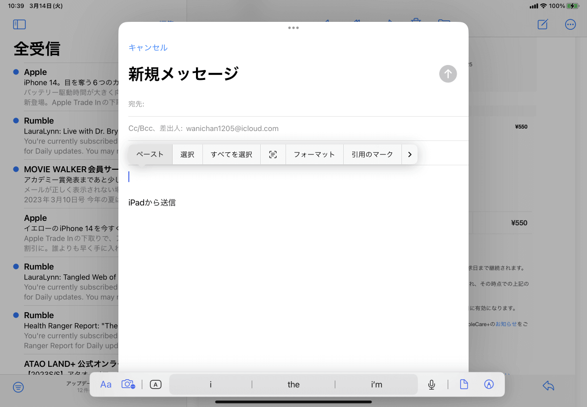 - ポップアップメニューより[ペースト]を選択します。