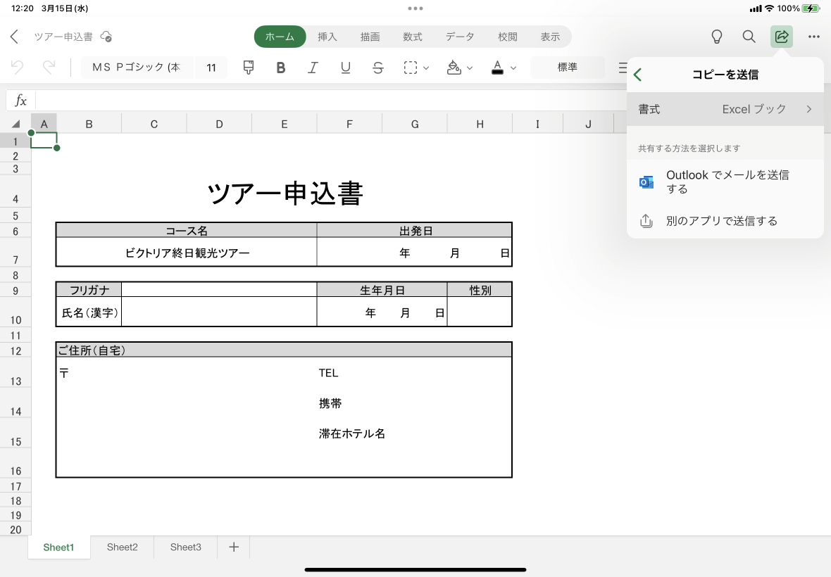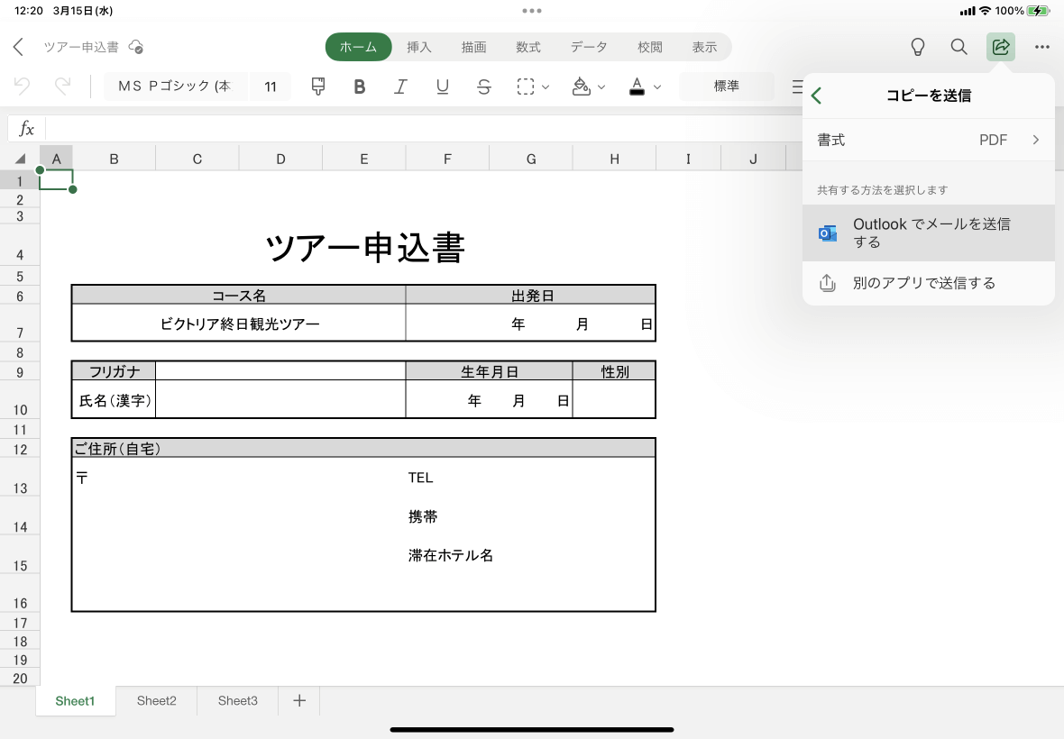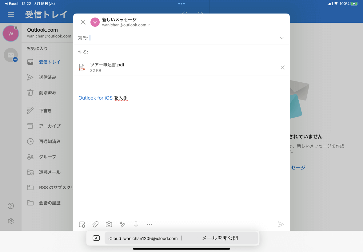 ※執筆環境:Excel for iPad バージョン 2.71 / Outlook for iPad バージョン4.2308.1