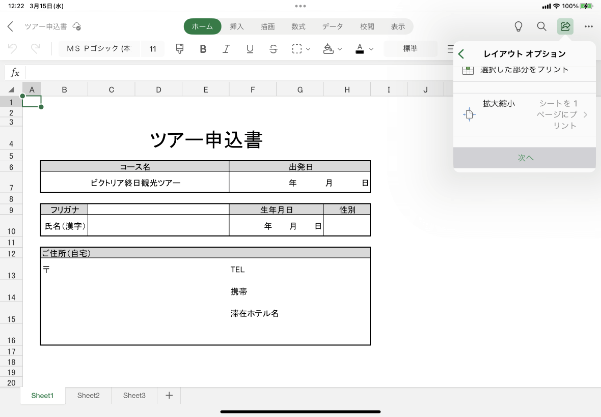 1ページに縮小する場合は[拡大縮小印刷]をタップして[シートを1ページに印刷]を選択します。