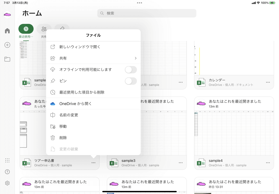 ※執筆環境:Excel for iPad バージョン 2.70.1