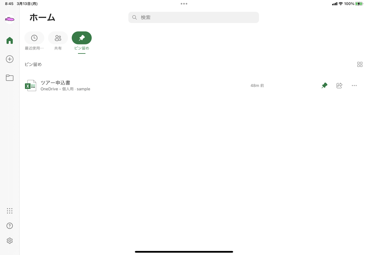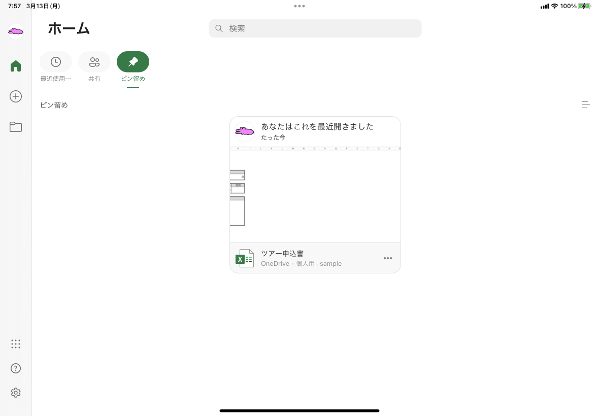 iPadでピン留め操作をするにはリストビューの方がスムーズです。