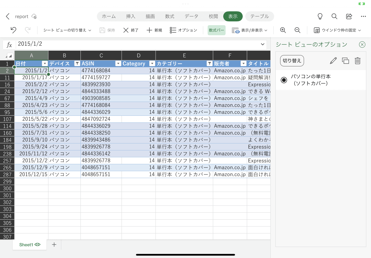 - シートビューが追加されました。行列タイトルが白黒反転し、シートタブの右側に目のアイコンが追加されました。
