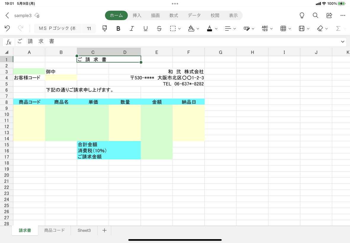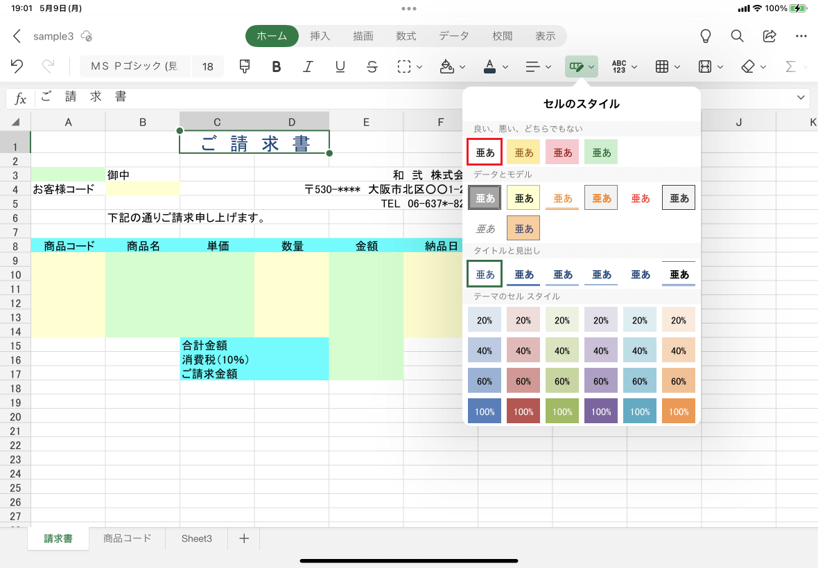 - [ホーム]タブの[セルのスタイル]をタップします。