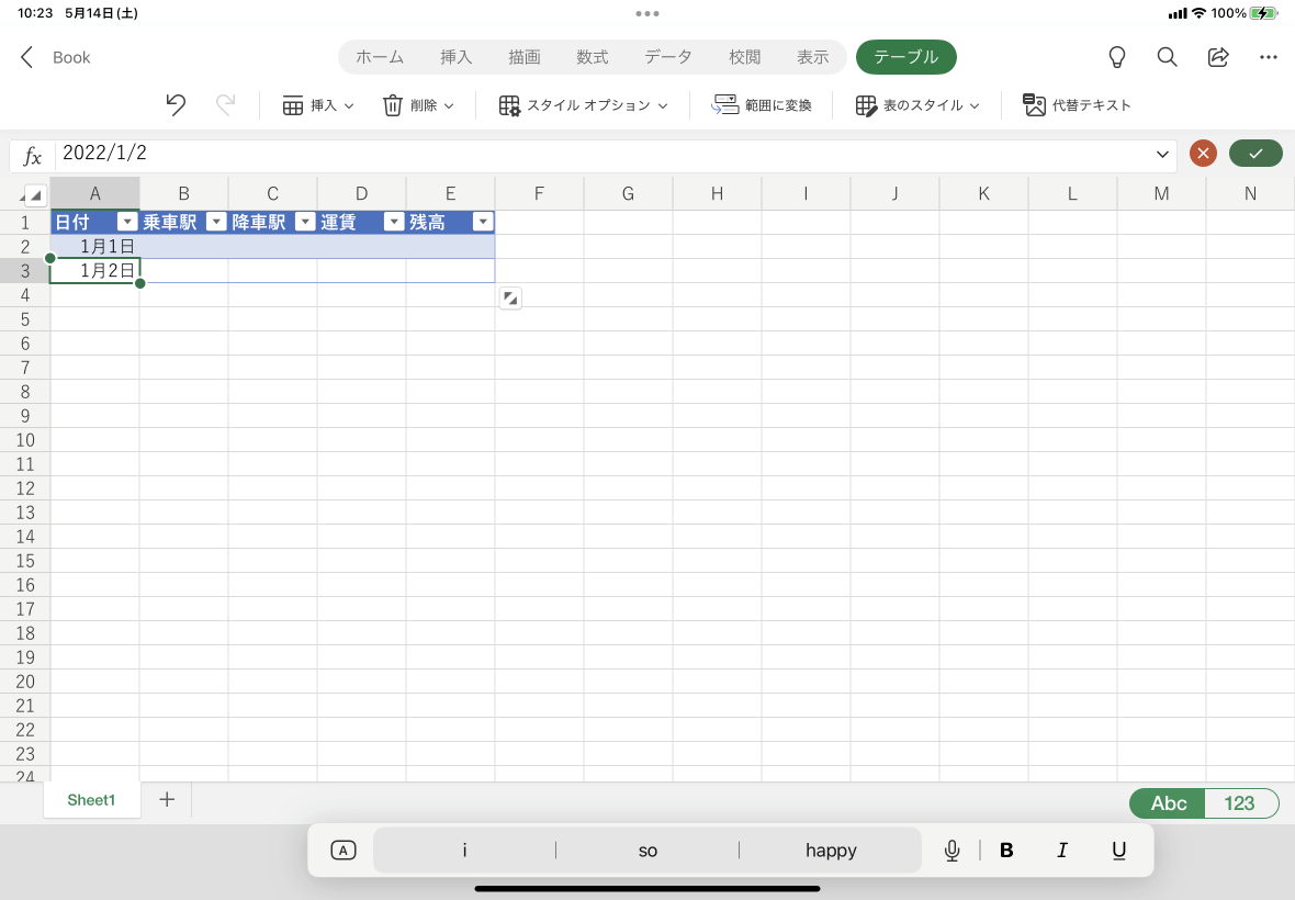 ※執筆環境:Excel for iPad バージョン 2.61