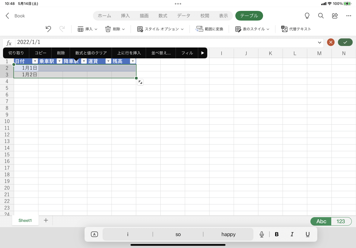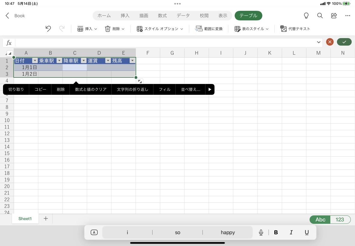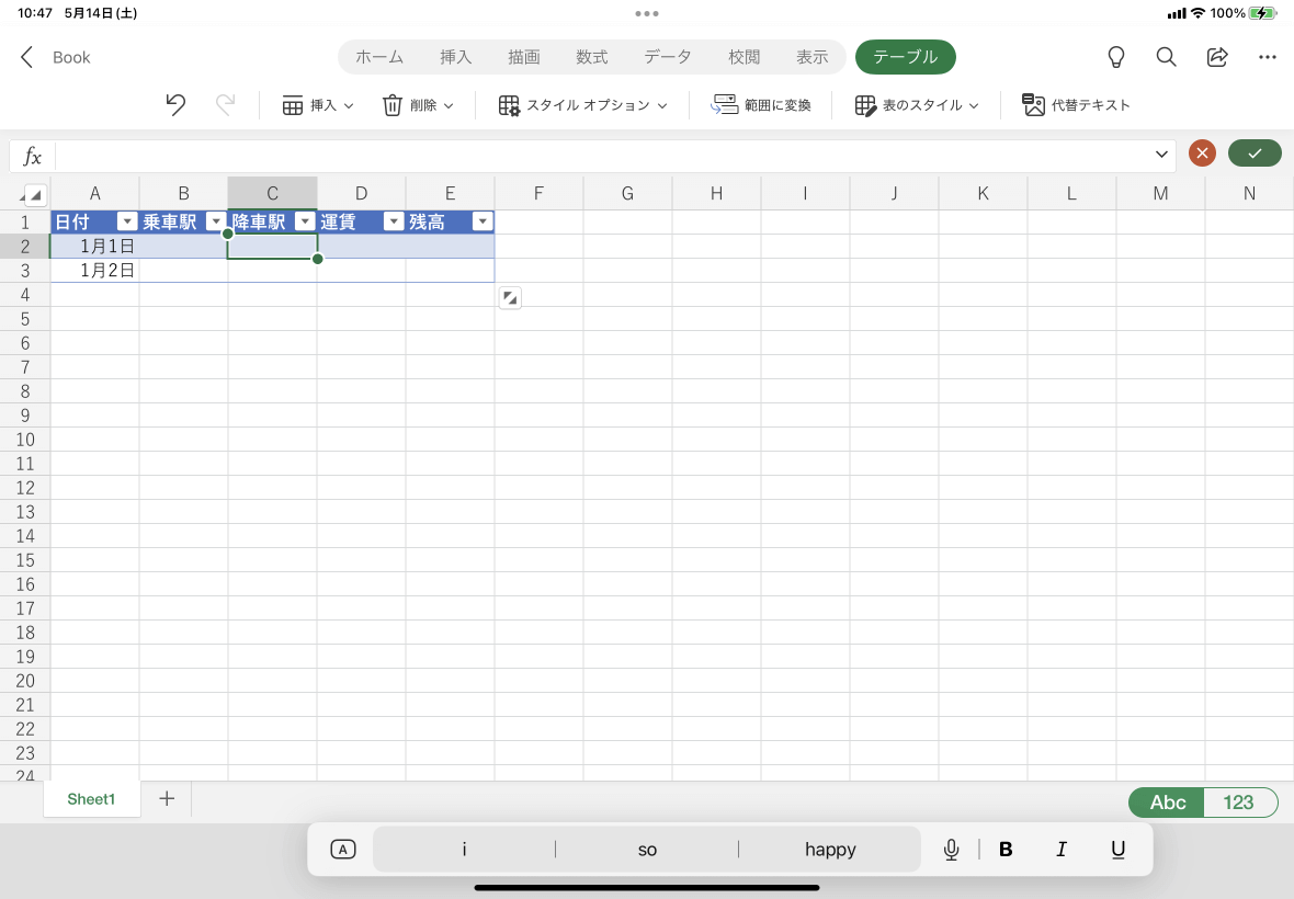 ※執筆環境:Excel for iPad バージョン 2.61