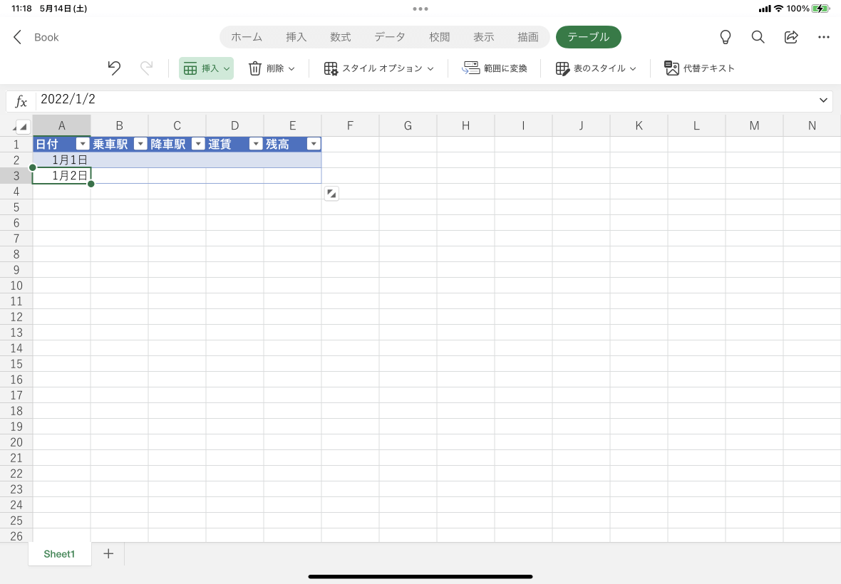 ※執筆環境:Excel for iPad バージョン 2.61