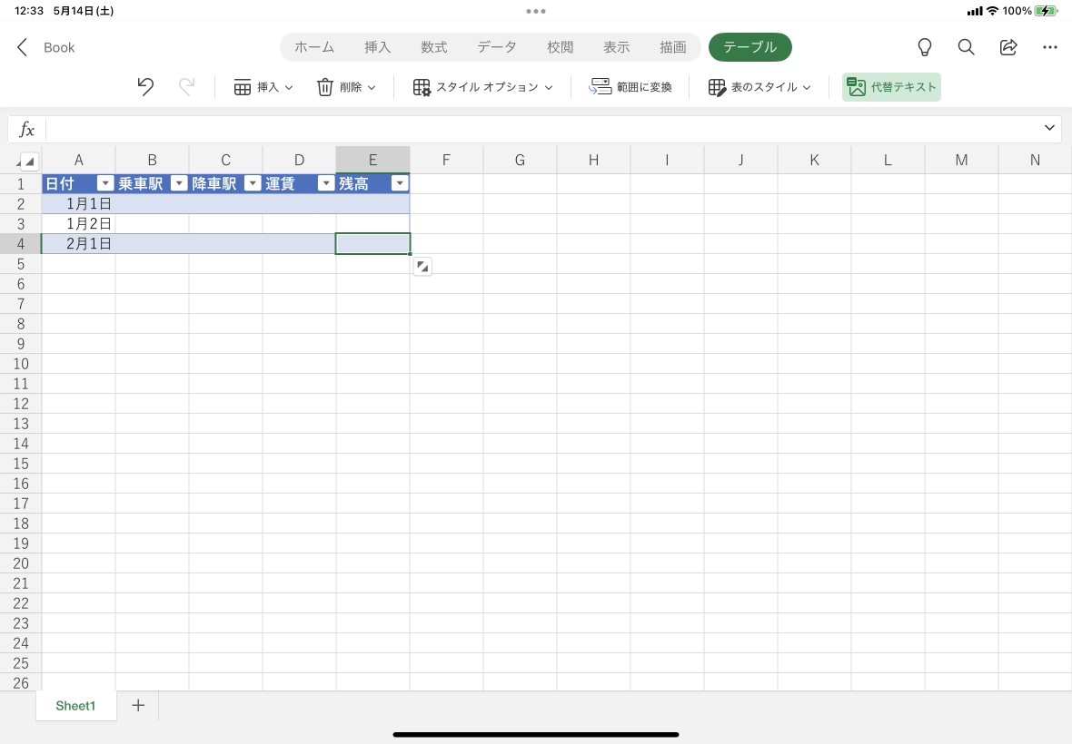 アクセシビリティの高いスプレッドシートにするには、テーブルに代替テキストを設定しておくとよいでしょう。テーブル内にカーソルを移動して[テーブル]タブの[代替テキスト]をタップすることで、説明文を指定できます。