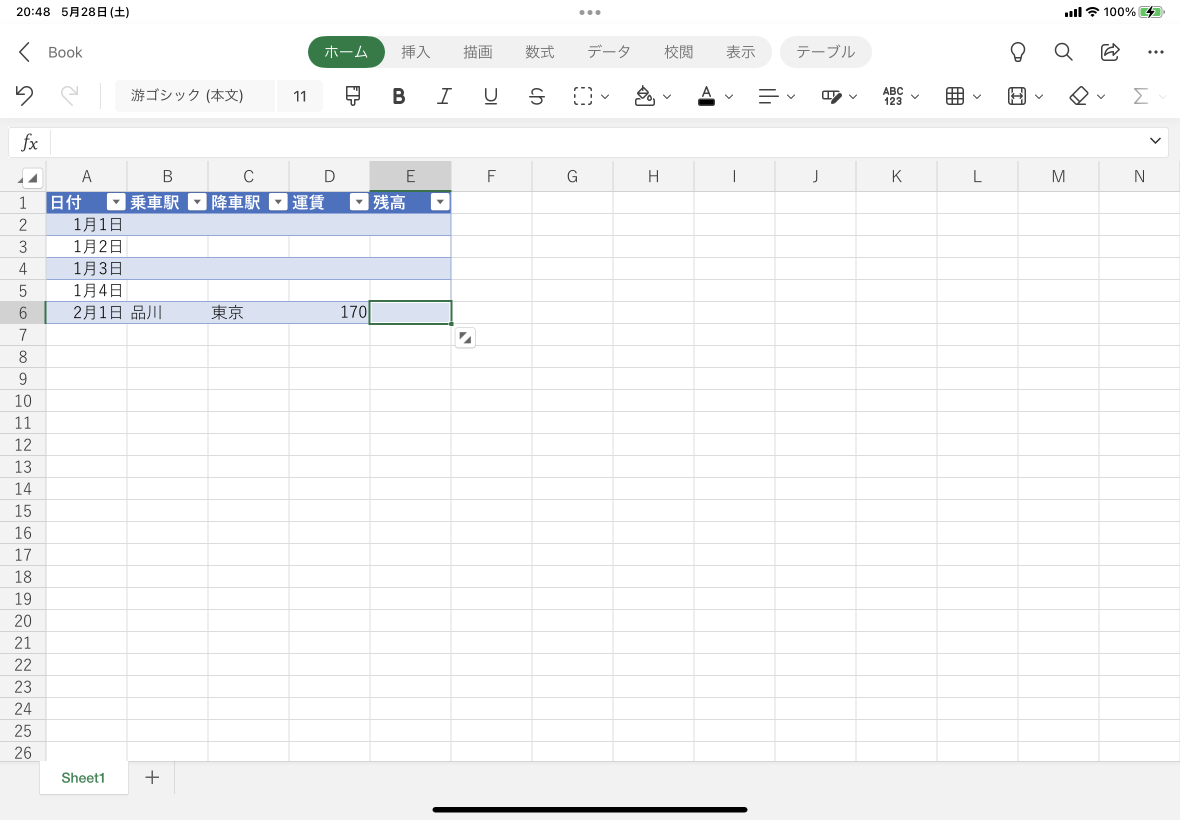 (テーブル選択)をタップしてテーブル全体を選択します。