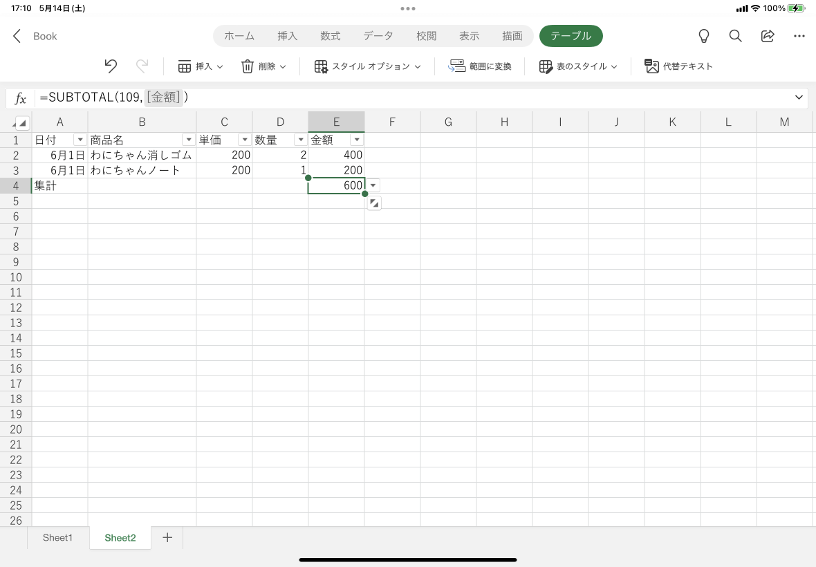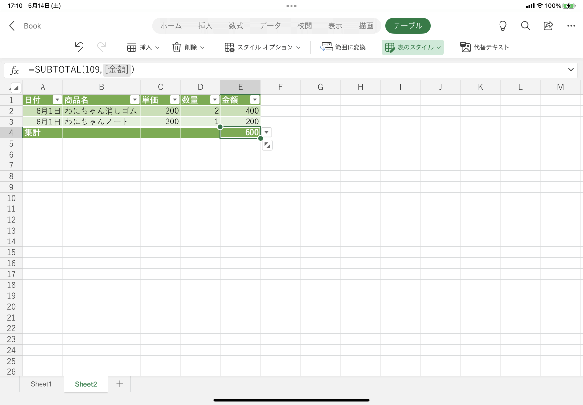 ※執筆環境:Excel for iPad バージョン 2.61