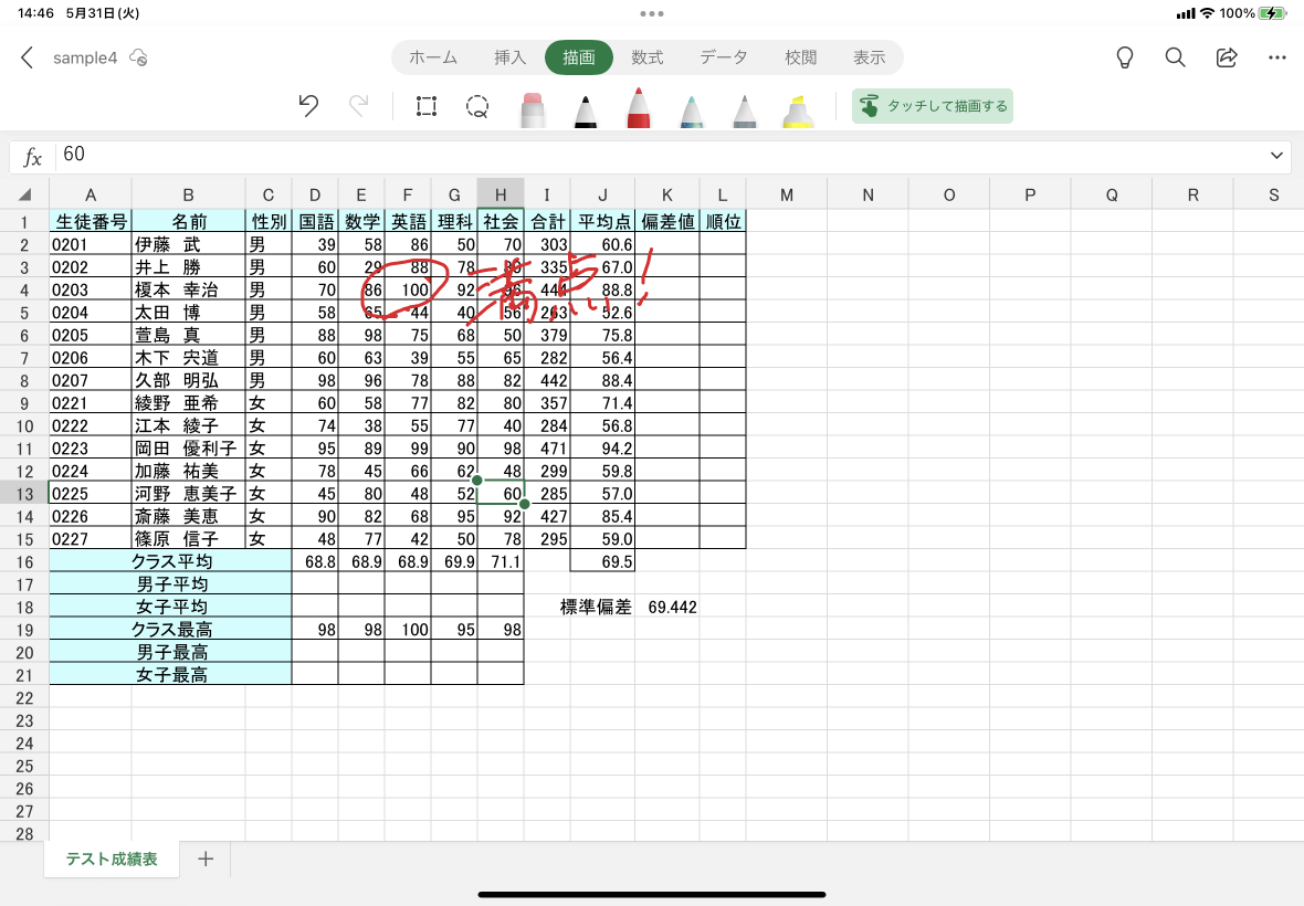 - フリーハンドで文字を描くとワークシート上に手書きオブジェクトが配置されます。