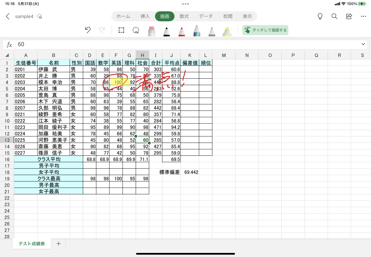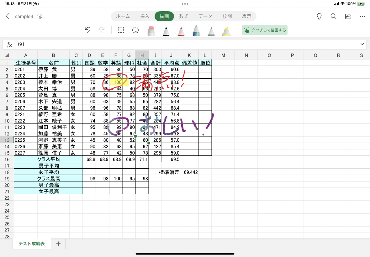 - ワークシート上になぞると、蛍光ペンが引かれました。