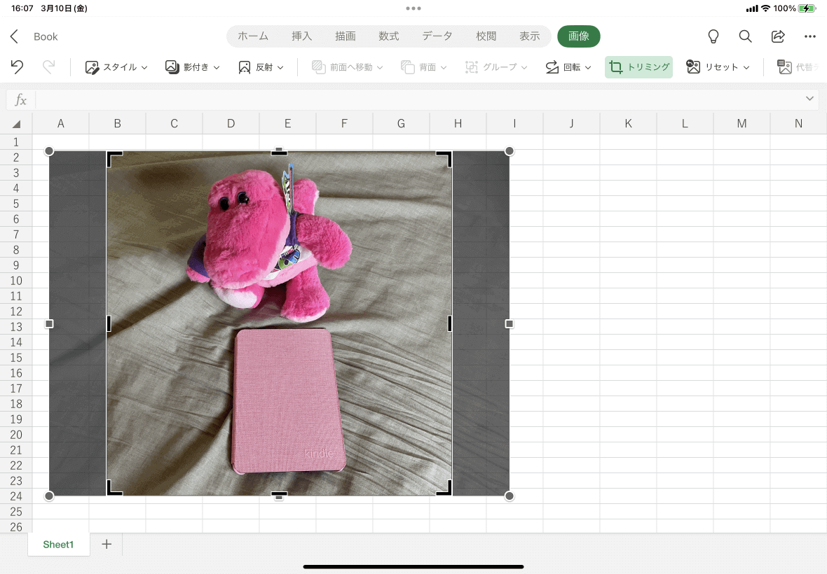 4:3や16:9、正方形など、一般的な縦横比に合わせてトリミングするには、Excel for iPadで[画像]タブを開き、[トリミング]をタップして、ポップアップメニューから縦横比をタップします。