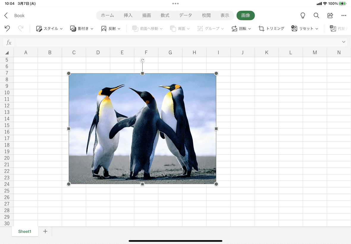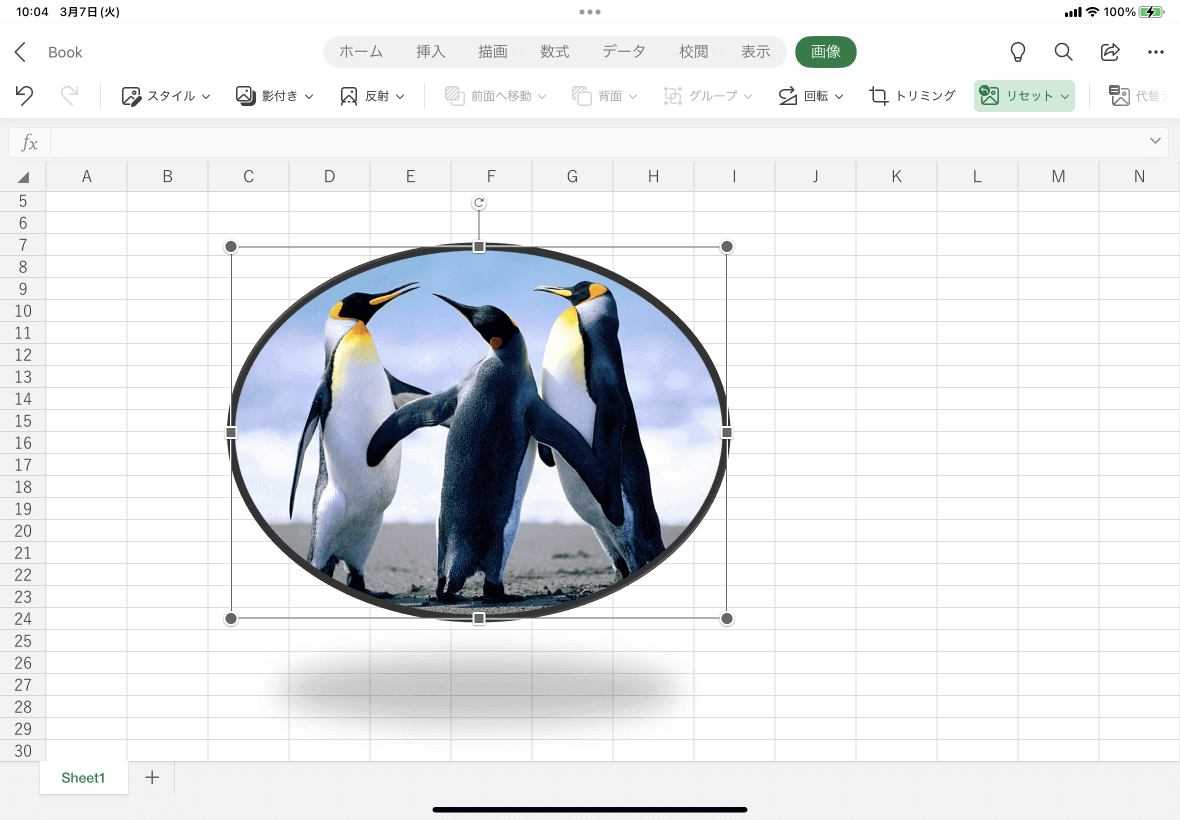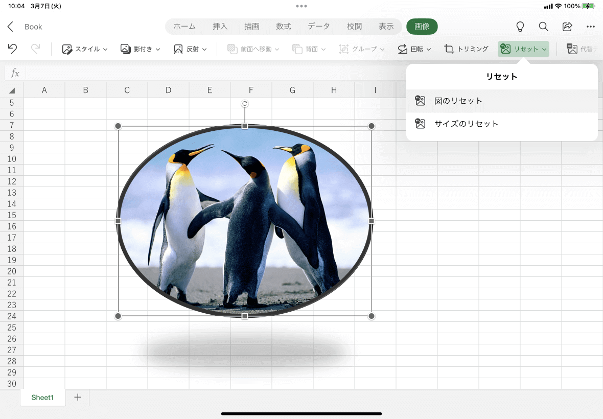 図のスタイルや効果が適用されている場合は、Excel for iPadで図をリセットすることでそれらのスタイルがクリアになります。[画像]タブを開き、[リセット]をタップして、[図のリセット]を選択します。