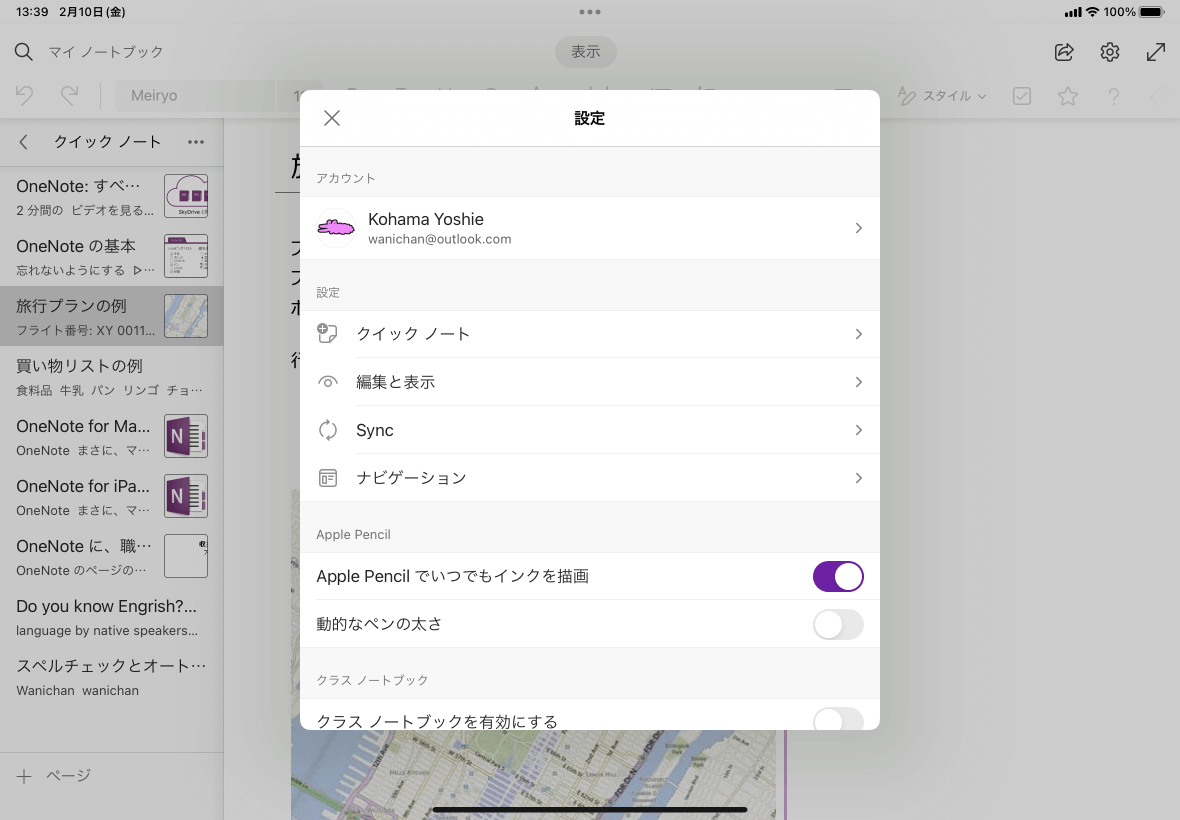 Apple Pencilを使用して文字を書こうとすると、自動的に描画モードになって困る場合は、OneNote画面右上の