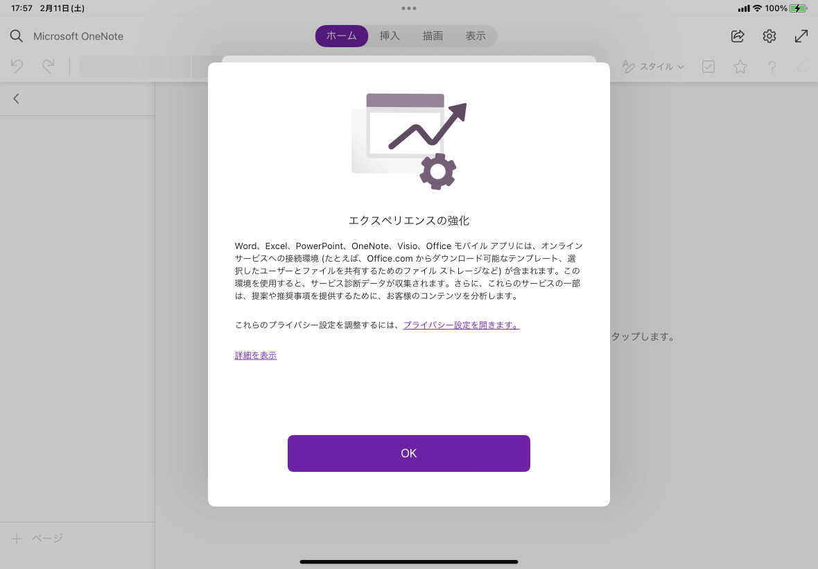 - 以下の画面になったら[OK]をタップします。