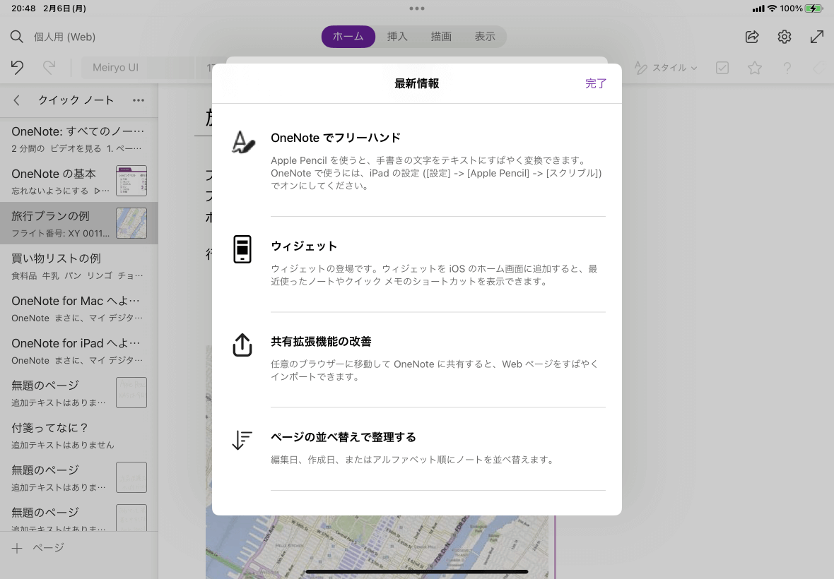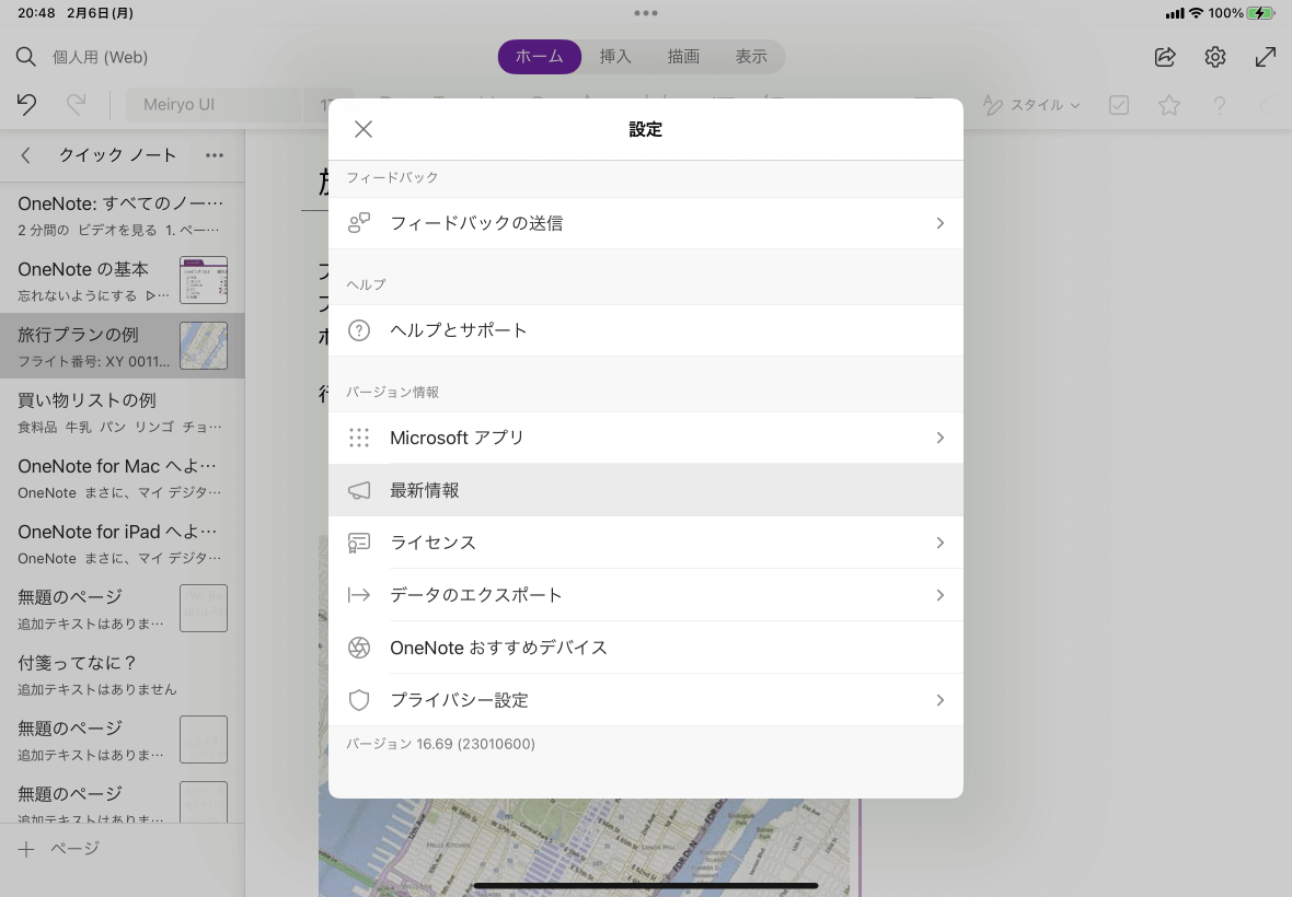 - OneNoteの最新情報が表示されました。