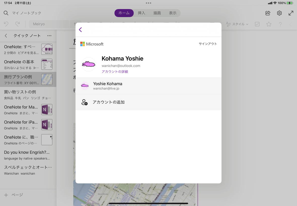 右上の歯車のアイコンをタップし、削除したいアカウントに切り替えて、サインアウトをします。すでに追加されたアカウントに切り替わっている場合は、そのアカウントを選択してサインアウトするとOKです。