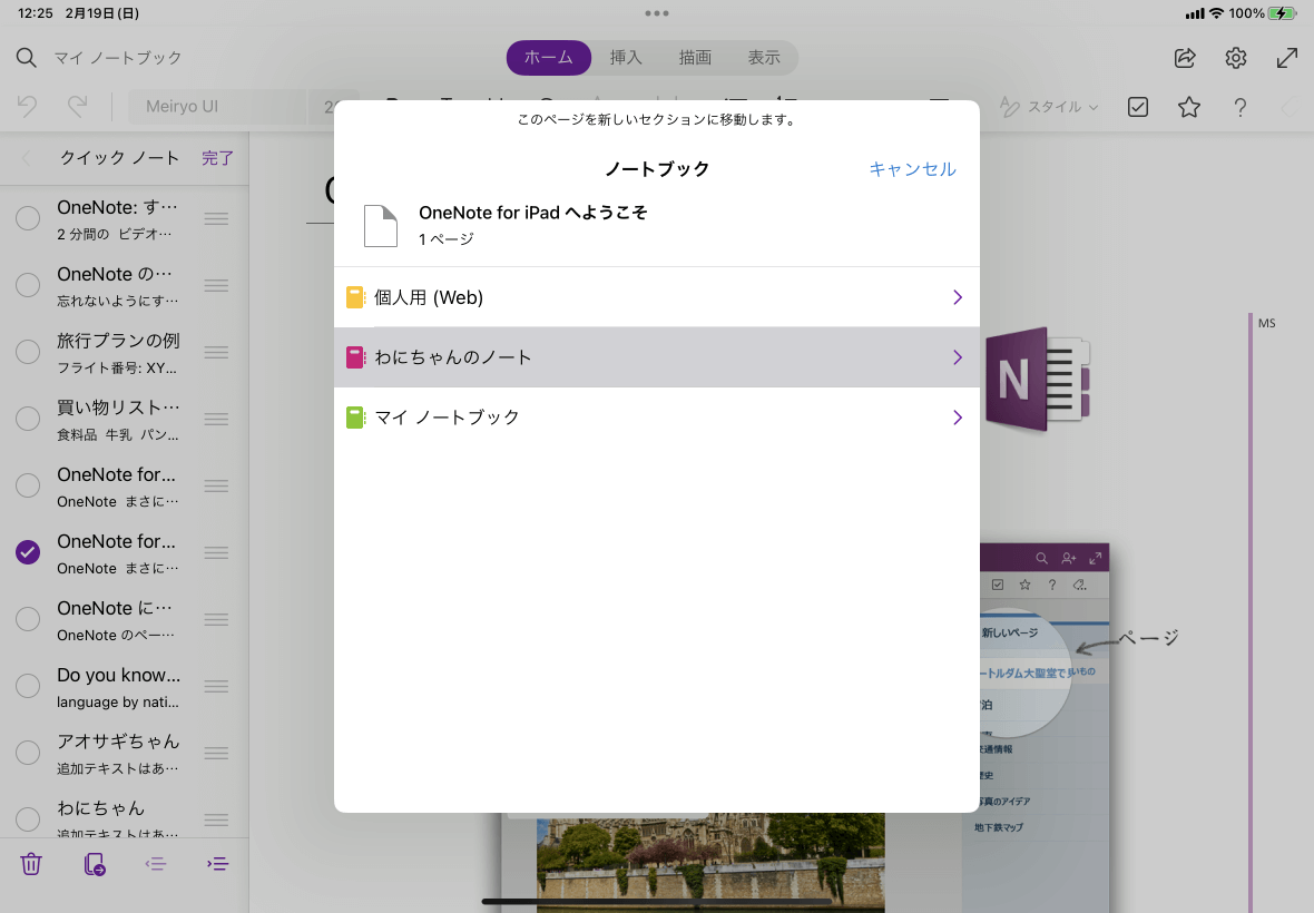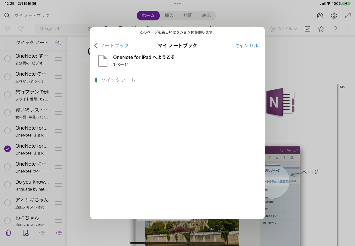 [移動またはコピー]をタップし、[移動]先のセクションを選択します。現在開いているほかのノートブックのセクションに移動することも可能です。