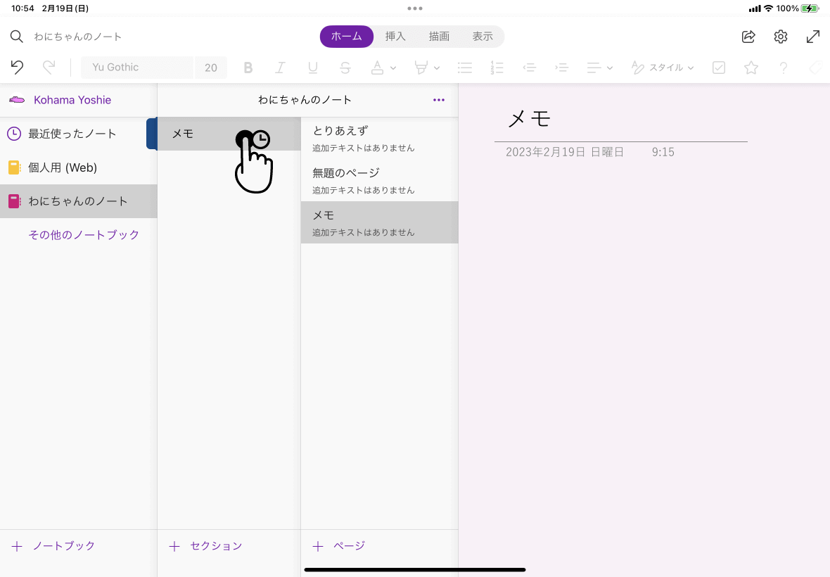 目的のセクションタブをホールド(長押し)してチェックを付け、画面下部の