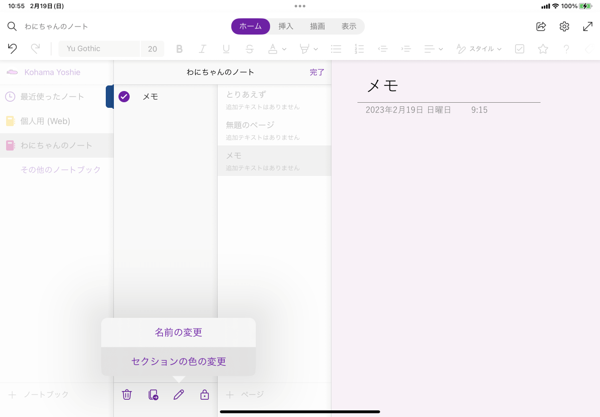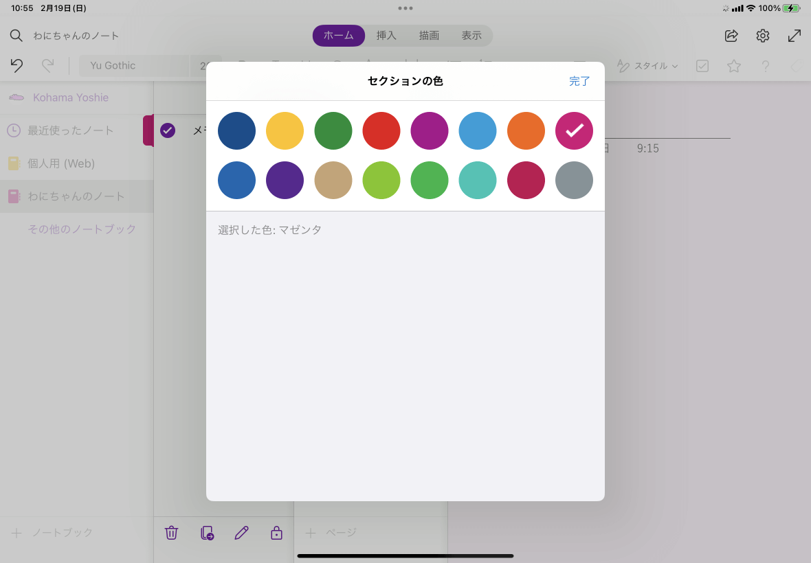 (鉛筆のアイコン)をタップして[セクションの色の変更]を選択し、変更したい色を選択します。