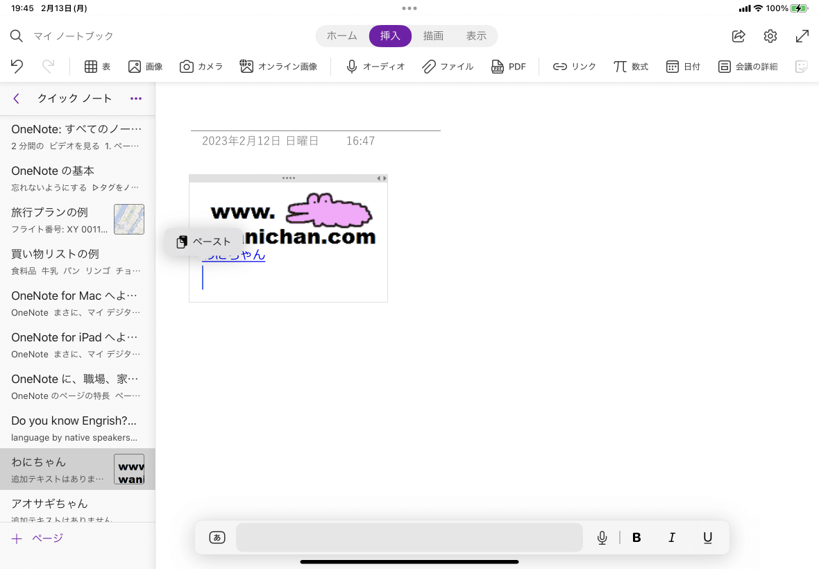 ※執筆環境:OneNote for iPad バージョン 16.69