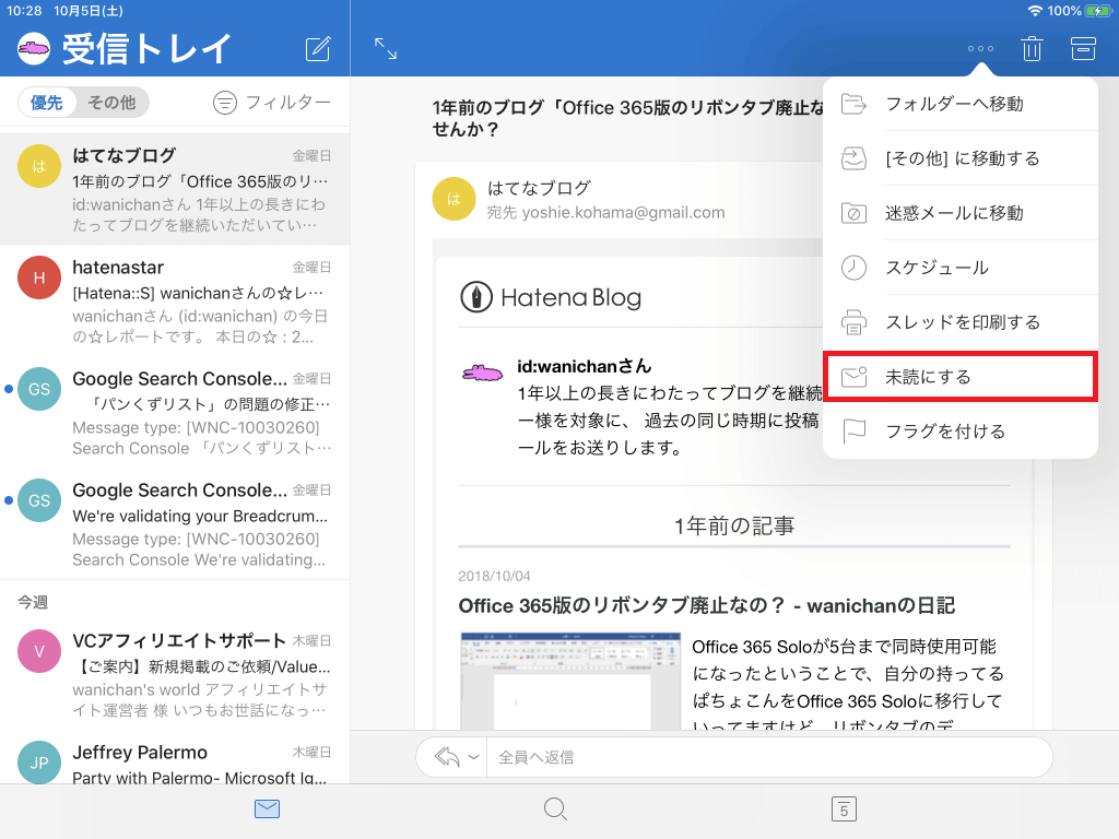 ※執筆環境:Outlook for iPad バージョン 4.5.0