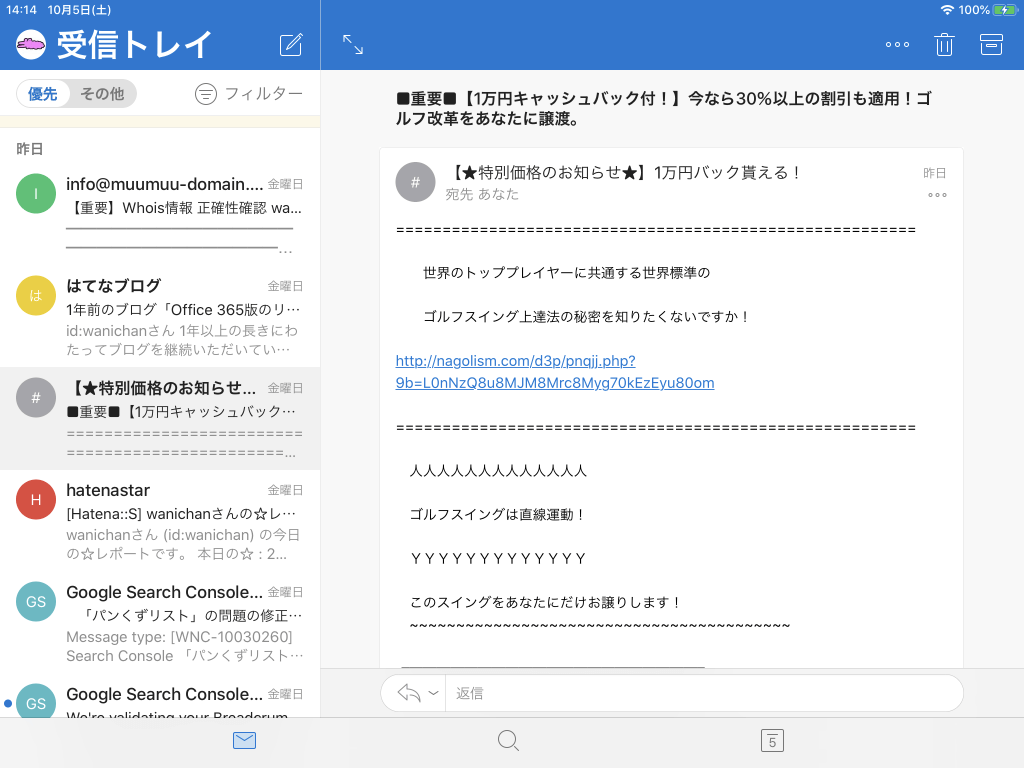 - 迷惑メールに移動しました。