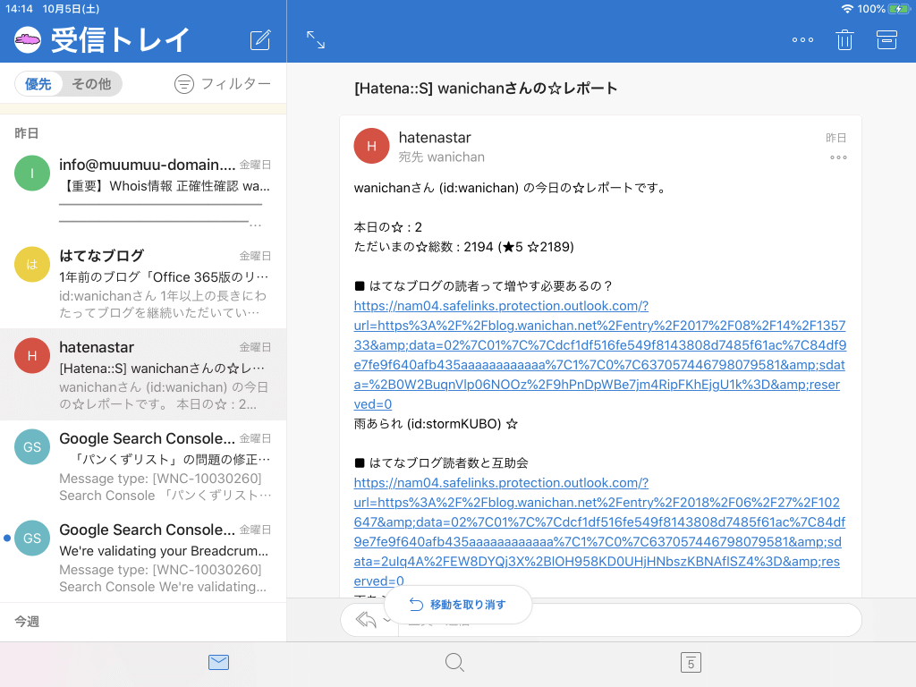 ※執筆環境:Outlook for iPad バージョン 4.5.0